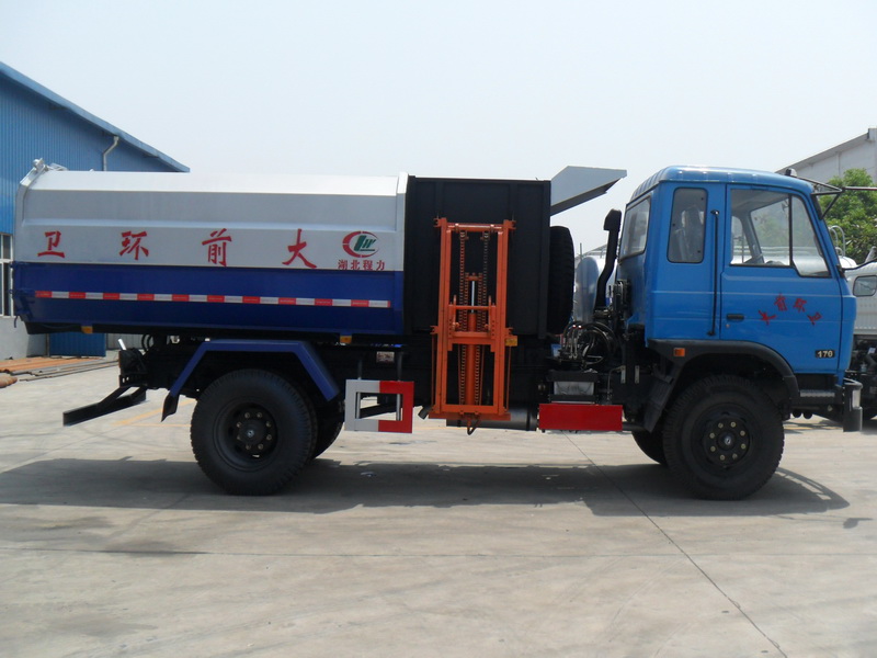 | 專用性能: | 自裝卸式垃圾車是由密封式垃圾廂、液壓系統(tǒng)、操作系統(tǒng)組成,能配幾十個(gè)垃圾桶,實(shí)現(xiàn)一車與多個(gè)垃圾桶聯(lián)合作業(yè),廂體上的液壓升降裝置可將垃圾桶吊上、放下,上下升降,上下一次工作循環(huán)時(shí)間為50S,密封式廂體環(huán)保衛(wèi)生,可避免二次污染。其自裝式的掛桶裝置可直接將路邊的垃圾桶掛在上面用提升機(jī)直接到在垃圾箱體里面省去了裝垃圾的麻煩。