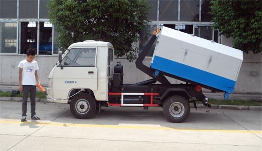 產(chǎn)品介紹:車廂可卸式垃圾車也叫拉臂式垃圾車,是一種采用高新設(shè)計可伸縮的鉤臂,實現(xiàn)垃圾廂的二次吊裝,自吊上放下,可自行傾倒垃圾。 該車結(jié)構(gòu)簡單,操作穩(wěn)定方便,裝卸效率高,機械化程度高,節(jié)省人力。一車可帶多個大廂,在裝卸的運輸過程中可有效地避免二次污染。 組成部分:國內(nèi)知名品牌東風(fēng)福瑞卡原裝底盤(全國聯(lián)保)、垃圾箱、取力器、多路換向閥、拉臂、液壓系統(tǒng)、操作系統(tǒng)等組成。(舉升油缸及鎖緊油缸系我廠自行研發(fā)生產(chǎn)的雙作用油缸。) 結(jié)構(gòu)設(shè)計:是在底盤上設(shè)附車架,在附車架上安放垃圾箱,并安裝吊裝裝置。拉臂主液壓缸是吊裝、卸載垃圾的主要傳動裝置,控制其伸縮可完成吊裝垃圾箱、卸垃圾以及卸下空垃圾箱的工作過程,拉臂主液壓缸一端連接在附車架的尾端靠駕駛室一端,另一端則連接在拉臂上。在附車架 的尾端設(shè)有支撐腿,并通過后支撐液壓缸的伸縮將支撐腿支撐于地面或收回,支撐地面時起到了支點后移的作用,便于平穩(wěn)地起吊滿載的垃圾箱體,底盤因而不會被抬起。 液壓系統(tǒng):由油箱、油泵、多路換向閥、液壓缸、濾油器和管路組成,該系統(tǒng)能實現(xiàn)裝卸垃圾的各種專用功能。 操作系統(tǒng):通過該系統(tǒng)可以實現(xiàn)各功能的轉(zhuǎn)換。通過操縱多路換向閥的手柄可完成裝料和卸料工作。(在操作多路換向閥時應(yīng)掛上取力器帶動油泵工作) 主要特點:垃圾收集方式簡便、高效、環(huán)保性好(不產(chǎn)生二次污染),質(zhì)量可靠,故障率低,維護方便,運行費用低等特點。廣泛適用于適用于市政環(huán)衛(wèi)、市政、廠礦企業(yè)、物業(yè)小區(qū)、垃圾多而集中的居民區(qū)、城市街道垃圾處理。 | ||