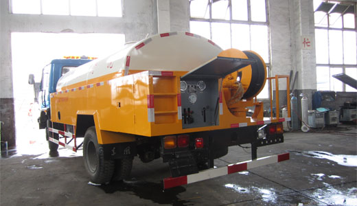 | 組成部分:主要由東風(fēng)145原裝底盤(全國聯(lián)保)、水罐、水路系統(tǒng)、液壓系統(tǒng)、卷管器、沖洗管道、高壓噴頭等組成。